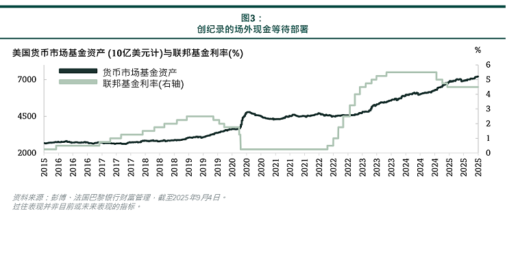 • 在降息预期推动下,资金从货币市场基金加速转出,投资者的持仓可能利好风险资产。