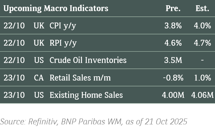 The Australian Dollar continued its decline yesterday, hitting 2.5-month lows around 0.6560 as rising US yields bolstered the greenback. Today’s Q3 inflation report is likely to influence the RBA’s rate outlook ahead of the next central bank on 05-Nov. While headline inflation is expected to ease, any upside surprises are almost certain to rule out a December rate cut, especially with the RBA the least dovish among the major central banks. Markets currently see only a 34% chance of a RBA cut this year, with easing likely to start next April.