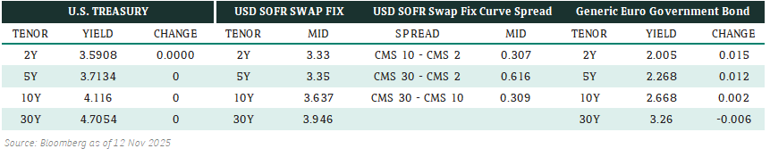 Investors digested stronger than expected October JOLTS data on Tuesday. Job openings rose to 7.74 million from 7.37 million previously, underscoring the continued resilience of the US labour market. The market will now focus on the upcoming key jobs report and speeches from several Fed officials to gauge the Fed's potential policy moves at the December FOMC, where we see a 25bps cut in interest rates. Aside from the US, market participants are also keeping a close eye on political turbulence in France, where the government is bracing for an upcoming no-confidence vote.
