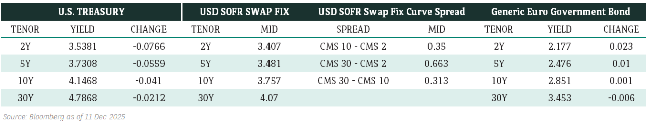 The AT1 market opened unchanged, maintaining a constructive tone after last week’s strong performance, with many AT1 bonds rallying by 1.5 points. Some consolidation occurred in recent AT1 issues and long call date ones as rates rose but buying of AT1s with short call dates continued for carry plays. Market participants expect AT1s to grind higher into year-end, potentially paving the way for a positive reception of new issues in January.