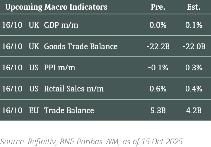Core inflation in the US eased more than expected to 3.2% annually and 0.2% monthly. The data provided some reassurance regarding price pressures in the economy, though inflation remains elevated as headline CPI rose (within expectation) to a 5-month high of 2.9% in December. Sentiment improved, as expectations for the Fed to cut rates increased. US equities posted their largest gains in over two months, reinforced by the cooler inflation, decline in bond yields and also strong bank earnings. We continue to see 2 Fed cuts for 2025, which should bring us to a terminal rate of 4%.