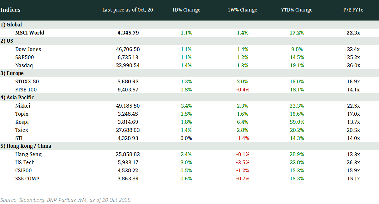 In China IG space, a very constructive week closing the week 5-20bps (basis points) tighter in general with tech and Hong Kong names leading the move. Risk sentiment is strong as stocks making new highs, with limited supply and continuous inflow to the market, spreads grind tighter everyday. Outside of China, Southeast names contunue to grind tighter with no supply and India IG is more focused on shorter duration with rates tighter.
