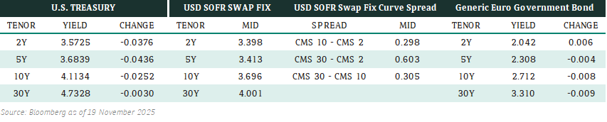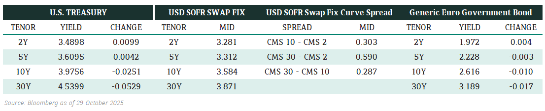 China IG space traded better, boosted by the rally in Hang Seng Index. High beta technology, media and telecoms, as well as asset management companies traded 1-3bps tighter on demand from asset managers. On the hand, Korea IG space saw more selling from asset managers and banks with quasi-sovereigns and financial perpetuals such as Woori bank, Shinhan Financial Group being sold in sizes. With the US 10-year Treasury yield at around 4.26% currently, close to our CIO's target of 4.25%, we have turned neutral on 10year duration and would prefer the shorter end of the curve for now.