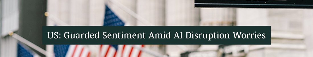 US equities have continued to lag World equities year to date, underscoring our relative non-US equity markets preference, with volatility experienced in the equity market driven by AI disruption concerns. While remaining constructive on the multi-year growth story of the AI theme, we stay neutral on US equities given elevated valuations and currency headwinds, although FY26E earnings delivery is expected to remain healthy supported by solid sales growth and margins in a lower rate environment.