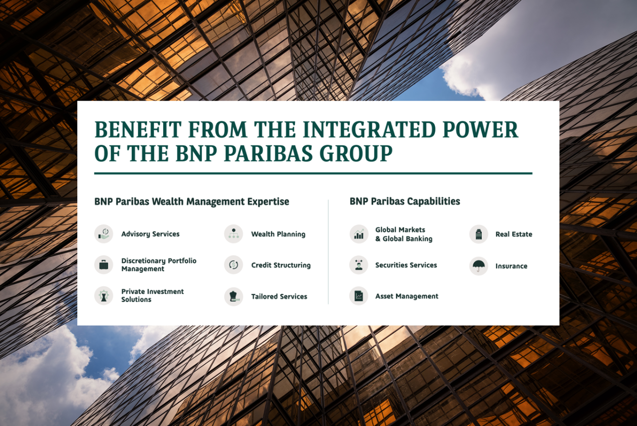 Your BNP Paribas Wealth Management relationship manager will help you design your portfolio based on your goals, preferences and desired level of involvement. Our award-winning strategists and advisory services translate macro-economic and market events into actionable investment ideas. Thanks to AI, we streamline our processes and increase efficiency of our digital tools; this frees up time for our relationship managers to focus on what’s important for you. As younger generations seek meaning and connection, we offer impact and sustainable wealth management solutions, addressing challenges like decarbonisation, natural risks, and biodiversity. Our focus is on Impact investments, supporting entrepreneurs driven by societal impact and a sustainable future.