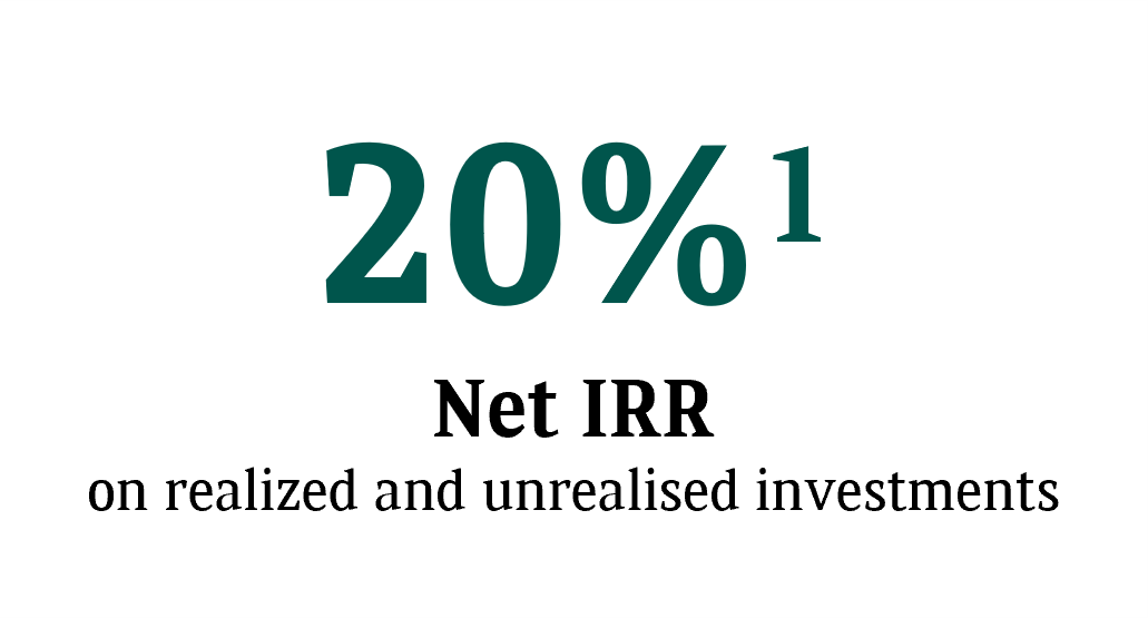 Since inception, the Equity Funds have generated a net multiple of 2.1x the invested amounts on realised investments, and a net IRR of 20% on realised and unrealised deals.