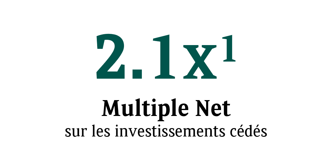 - 2.6x / 2.1x Multiple Brut / Multiple net sur les investissements cédés2