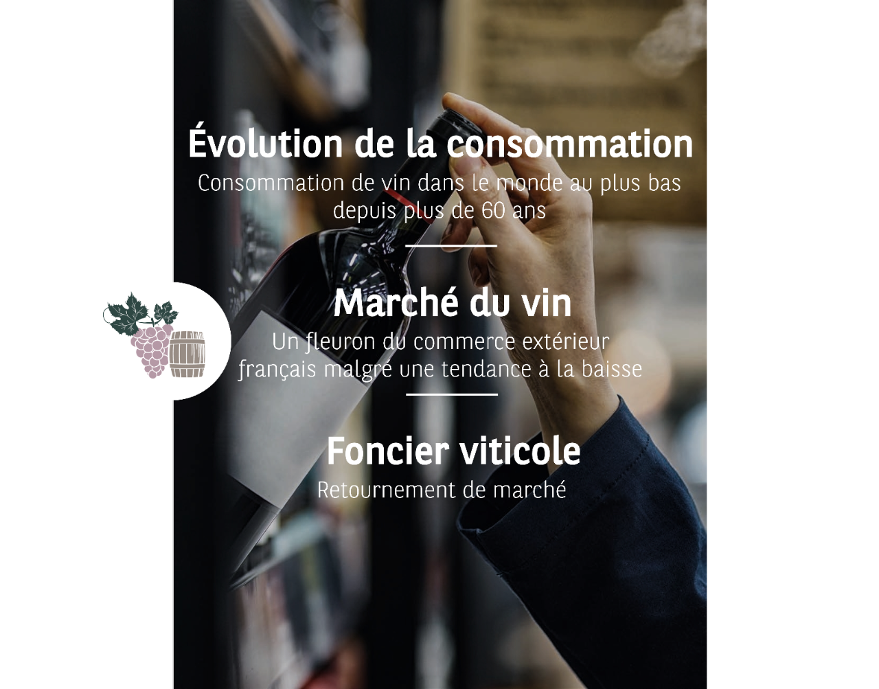 En France, mais également plus globalement en Europe, l’agriculture, la viticulture et la forêt sont aujourd’hui à la croisée des chemins. Après des années de hausse continue de ces secteurs, la conjoncture actuelle redessine les perspectives. La baisse des marchés, conjuguée à un contexte économique incertain, ouvre aujourd’hui de nouveaux champs des possibles aux investisseurs qui s’intéressent à ces secteurs et qui sont prêts à saisir les mutations en cours. Ces évolutions nécessaires sont d’autant plus d’actualité que dans les dix prochaines années, un professionnel sur deux partira à la retraite, posant la question cruciale du renouvellement des générations et de la transmission des exploitations.